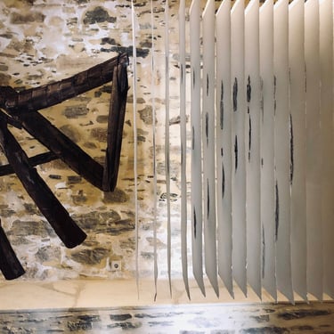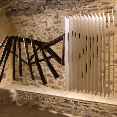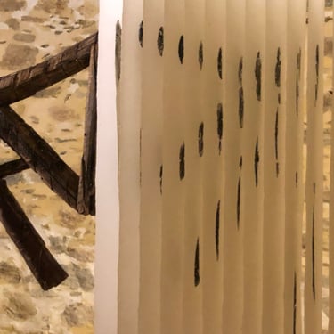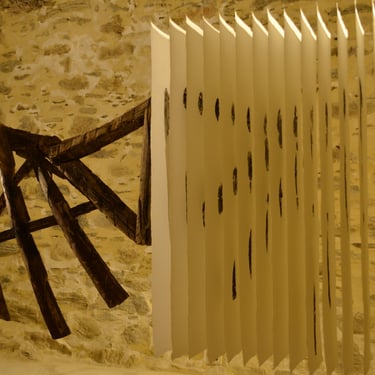 Icarus IV. (2019), wood, traditional Japanese paper, mixed media,about 600 cm x 35 cm x 136 cm.