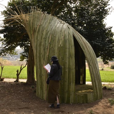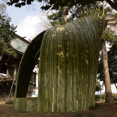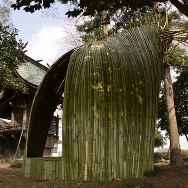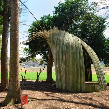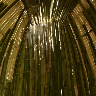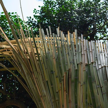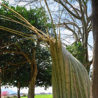 Dialogue II. (2019), bamboo, grass tiles, mixed media, about Ø 300 cm x 400 cm