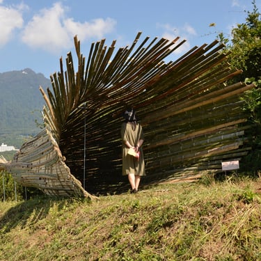 筑波山の声が聞こえる . (. 2017), 竹, ガラス, ミクスメディア, 約 1500cm×300cm×300cm