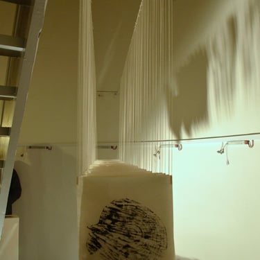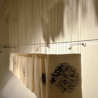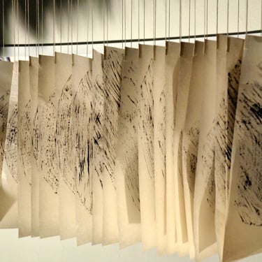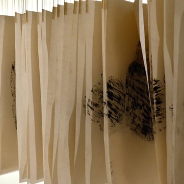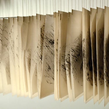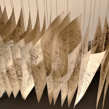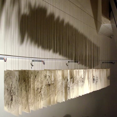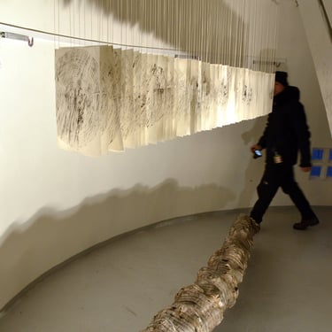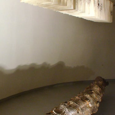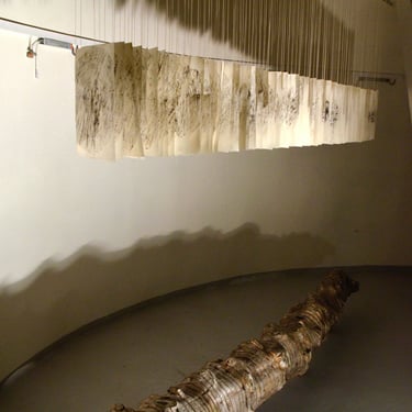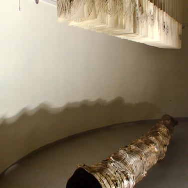 Echo of Wood . . (2017-18), drift wood, japanese paper, mixed media, about 200 cm x 30 cm x 300 cm.