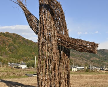 アート作品は美術館や屋内に展示されるものと思われています。彫刻のようなパブリックアートである可能性もありますが。しかし、作品を屋外の田んぼや自然空間の様な場所で、短期間(わずか数か月以内)展示し、その後、それらを撤去または破壊されてしまうのに、なぜその様な事をするのでしょうか?なぜそのように短命のアートワークやプロジェクトにエネルギーを浪費するのでしょうか?天候によって変形していき、構造部分を露呈する作品を展示する目的は何でしょうか?何よりも、そのような作品は、メインストリームカルチャーの性格とはやや対照的なのです。例えば、作品を簡単に移動したり、アートギャラリーや美術館に収蔵されることは容易ではありません。その様な作品がコレクターの興味を引くことも難しいのです。展覧会が終わったら、スタジオに戻すか、どこかに保管しなければならないのです。